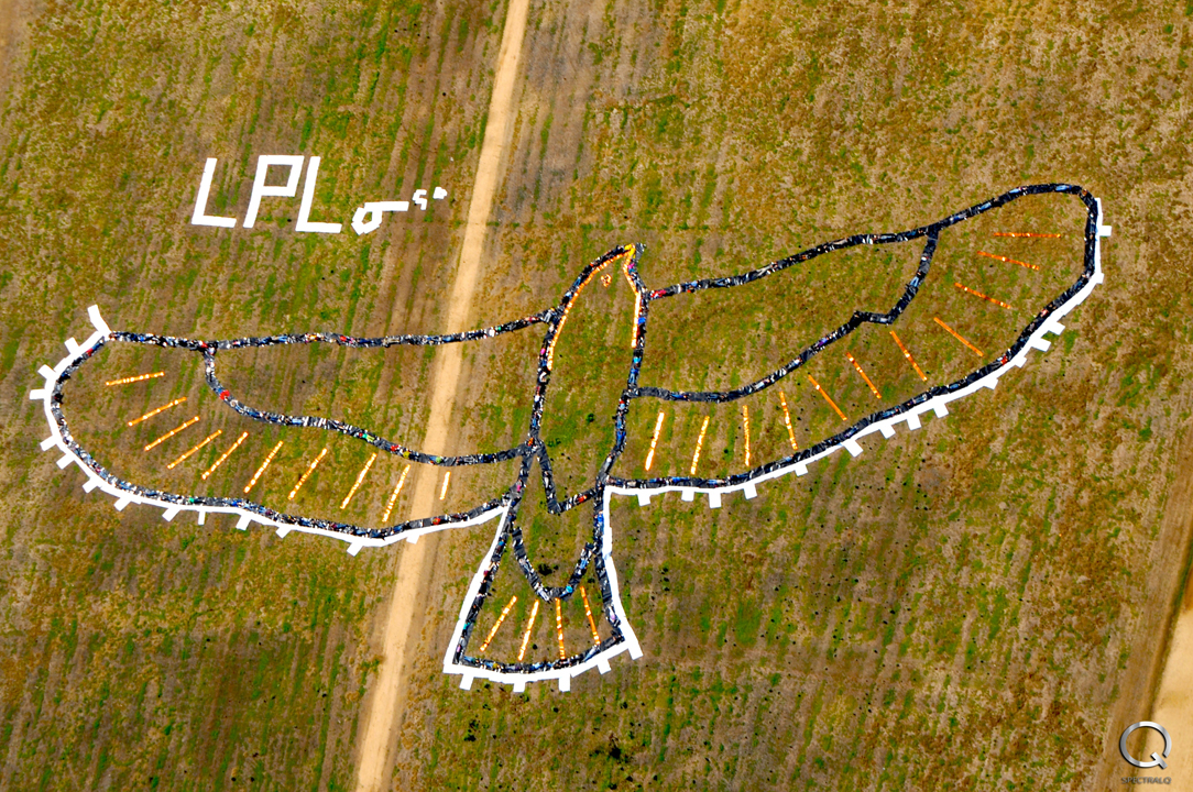 Another piece, “Solar Eagle,” by John Quigley (Los Angeles, USA), photo by SpectralQ, can actually be read as a third performance in the conversation that began in 2005 off Baffin Island, Canada. The word depicted means “well-being” in Inuktitut.