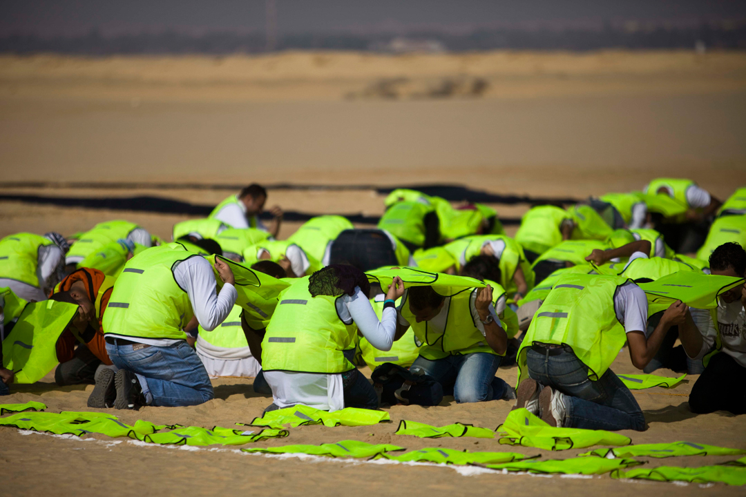 The “Solar Scarab” by Sarah Rifaat, Cairo, Egypt, utilized hundreds of young people to form the traditional Egyptian symbol of the Scarab beetle pushing the sun ahead. The beetle is a symbol of rebirth and as the website states: “Using the scarab and the sun in this art piece is both a reminder of the integral part the sun has always played in Egyptian history, and a call for re-examining our modern relationship to this most abundant source of clean energy.”